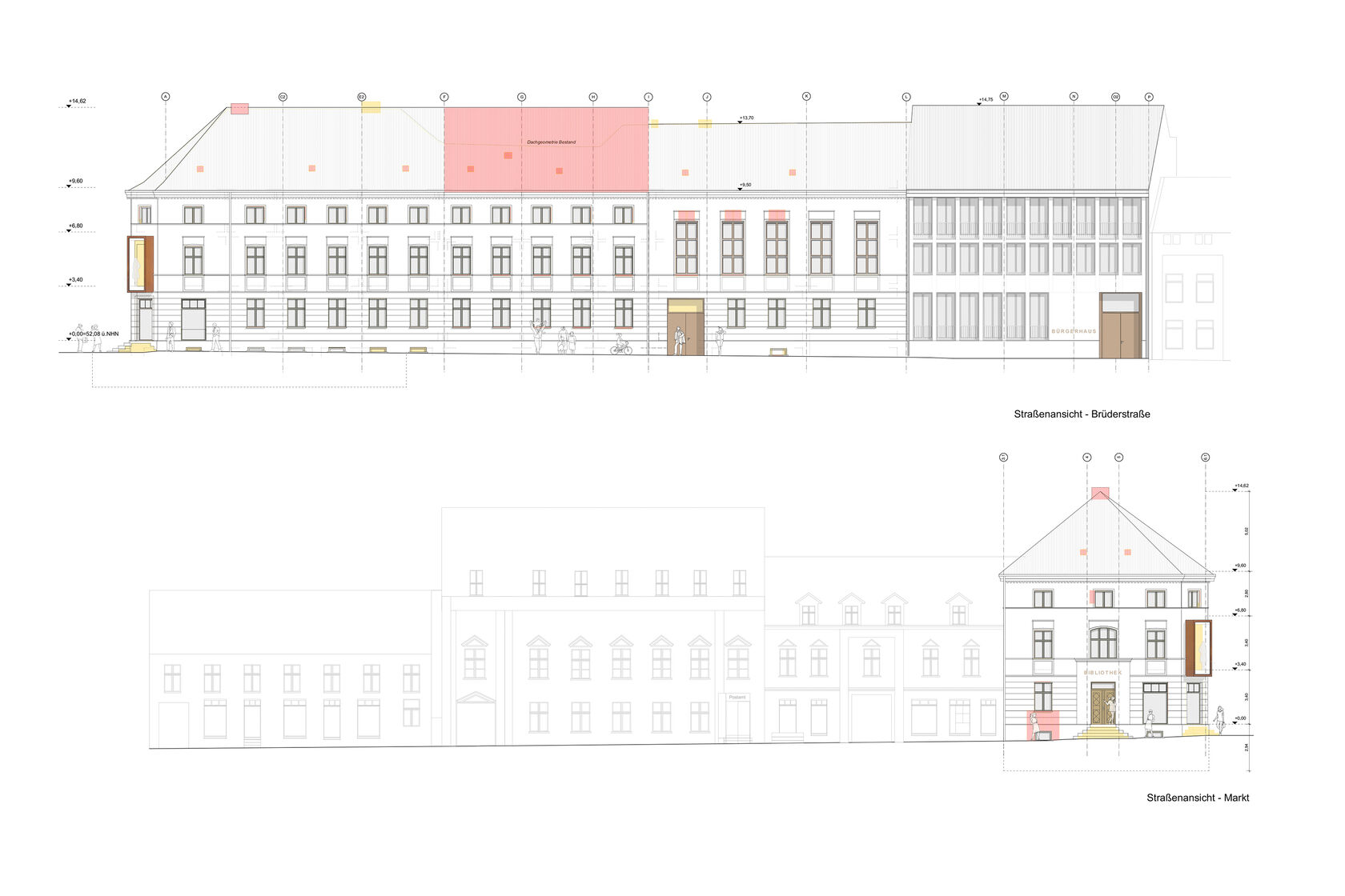 Die seit Ende der 1990er Jahre leerstehenden Gebäude der Brüderstraße 17/18 im historischen Stadtkern der Stadt Angermünde werden zum kommunalen Verwaltungssitz mit Bürgersaal, Stadtbibliothek und Archiv umgebaut und erweitert. Das Ensemble besteht in Summe aus vier Gebäudeteilen.